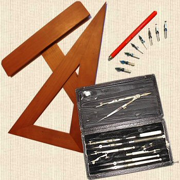 la même!!), Té, équerre, plumes
